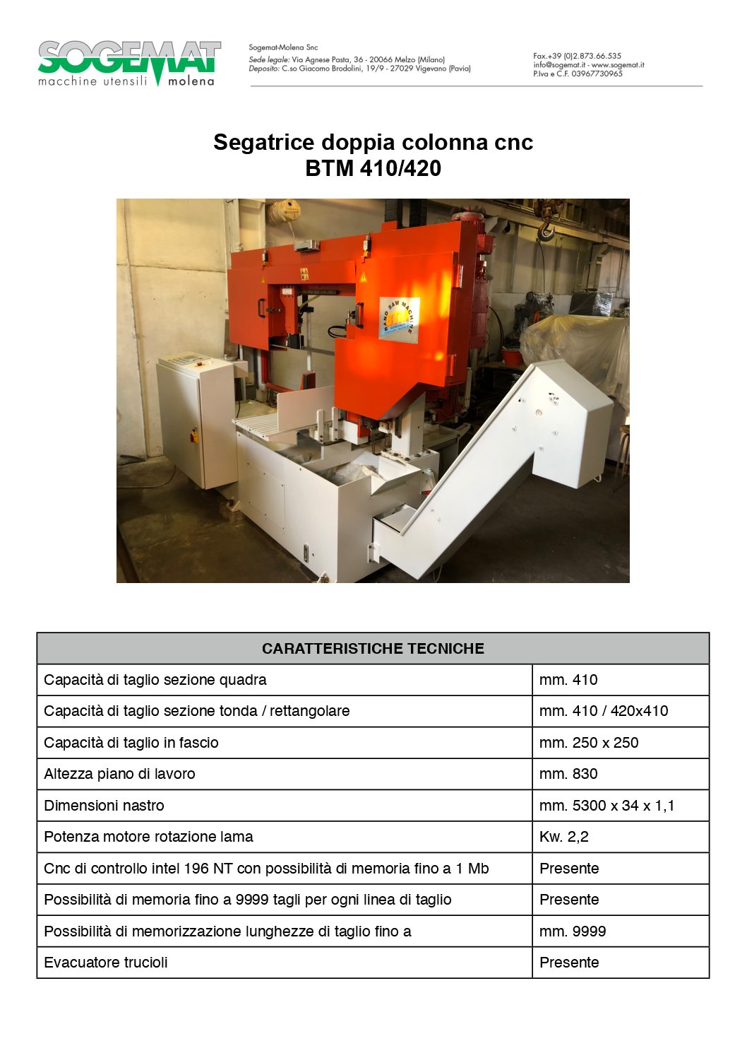 Segatrice doppia colonna cnc BTM 410/420